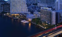 Hotel built in classical Thai style, palms and gardens, located on west bank of Chao Phaya River, adjacent to Krung Thep Bridge.