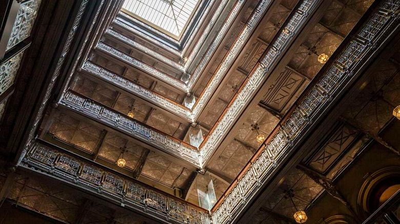 Boutique hotel, an architectural gem hailed for its iconic 9-story atrium & pyramidal skylight; in Lower Manhattan's New Downtown.